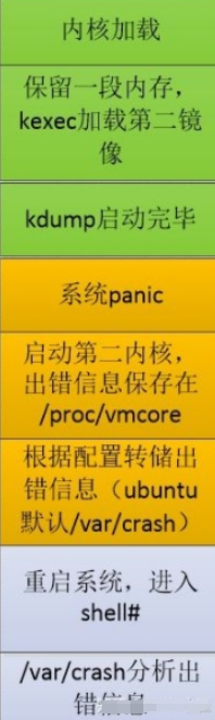2)系统panic,进入第二内核,内核将出错信息保存在/proc/vmcore提供给用户;