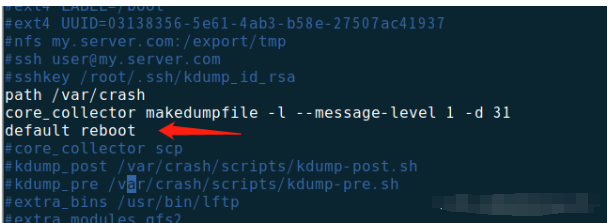 # sudo vim /etc/kdump.conf //更改kdump默认配置,设置内核crash后自动reboot