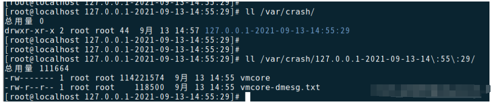 3)日志转储完毕,重启系统,/var/crash分析日志;
